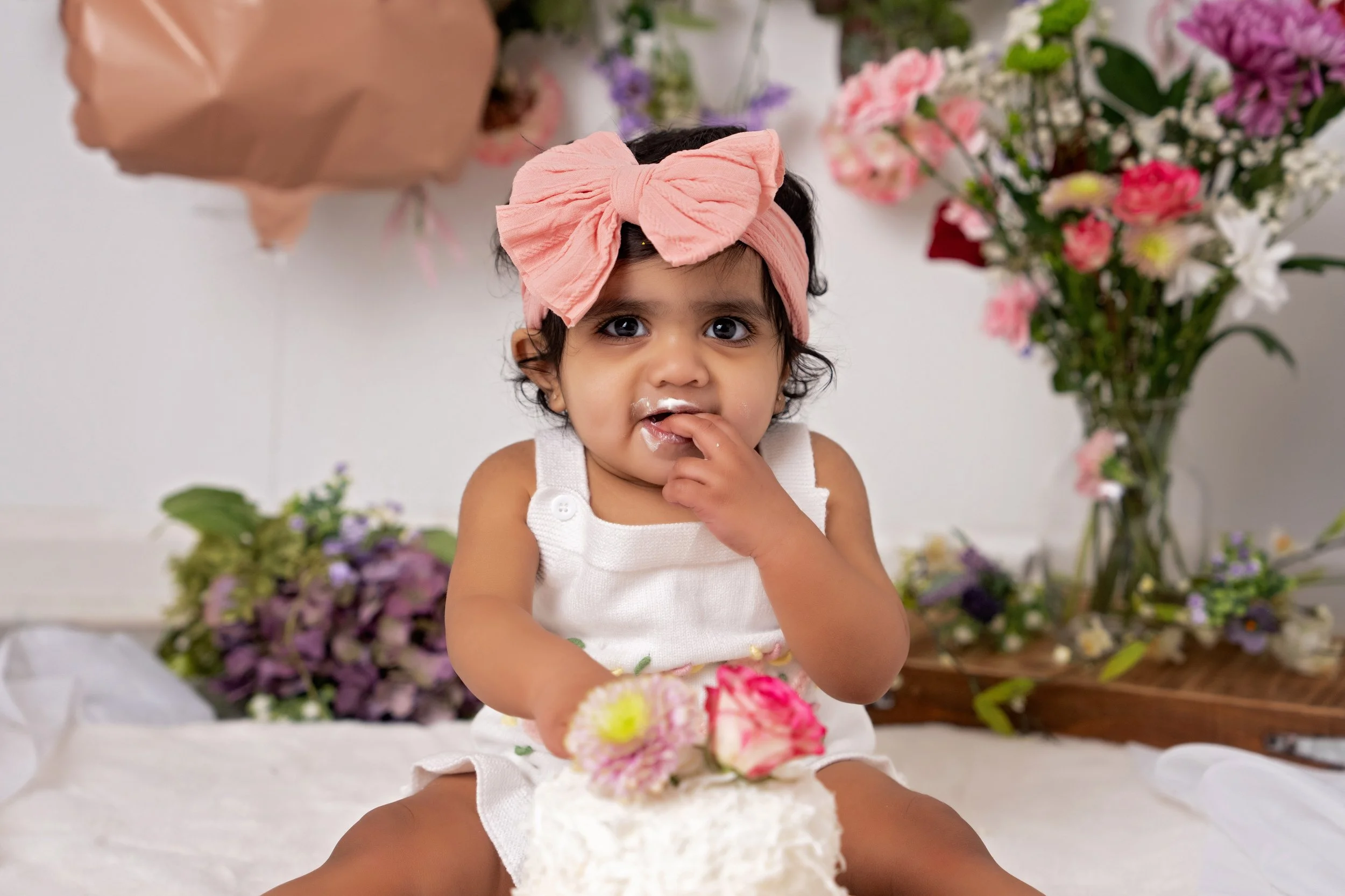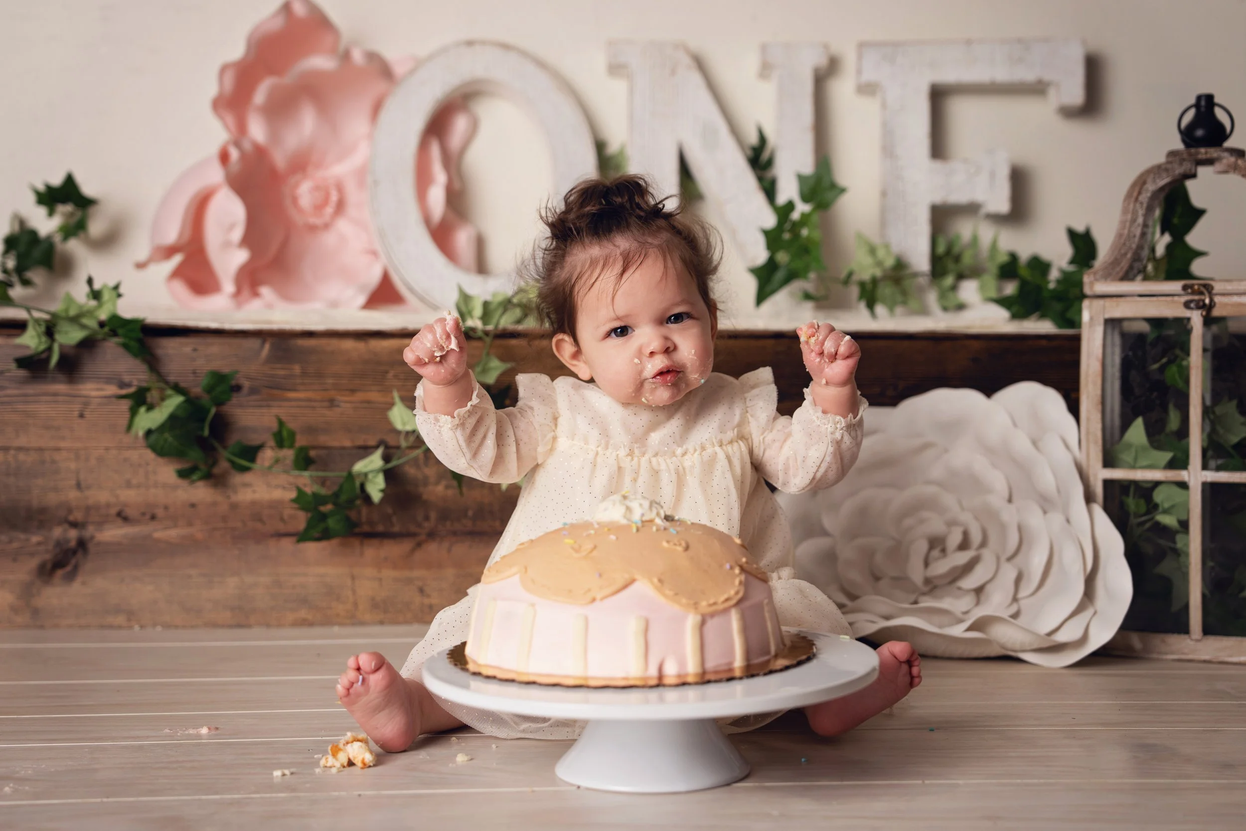 A smash cake session is a playful photo session where your one-year-old gets to dig into a cake (or alternative treats!) while we capture every adorable moment. These sessions are a favorite for parents because they combine candid expressions, messy fun, and milestone documentation in one memorable experience.
