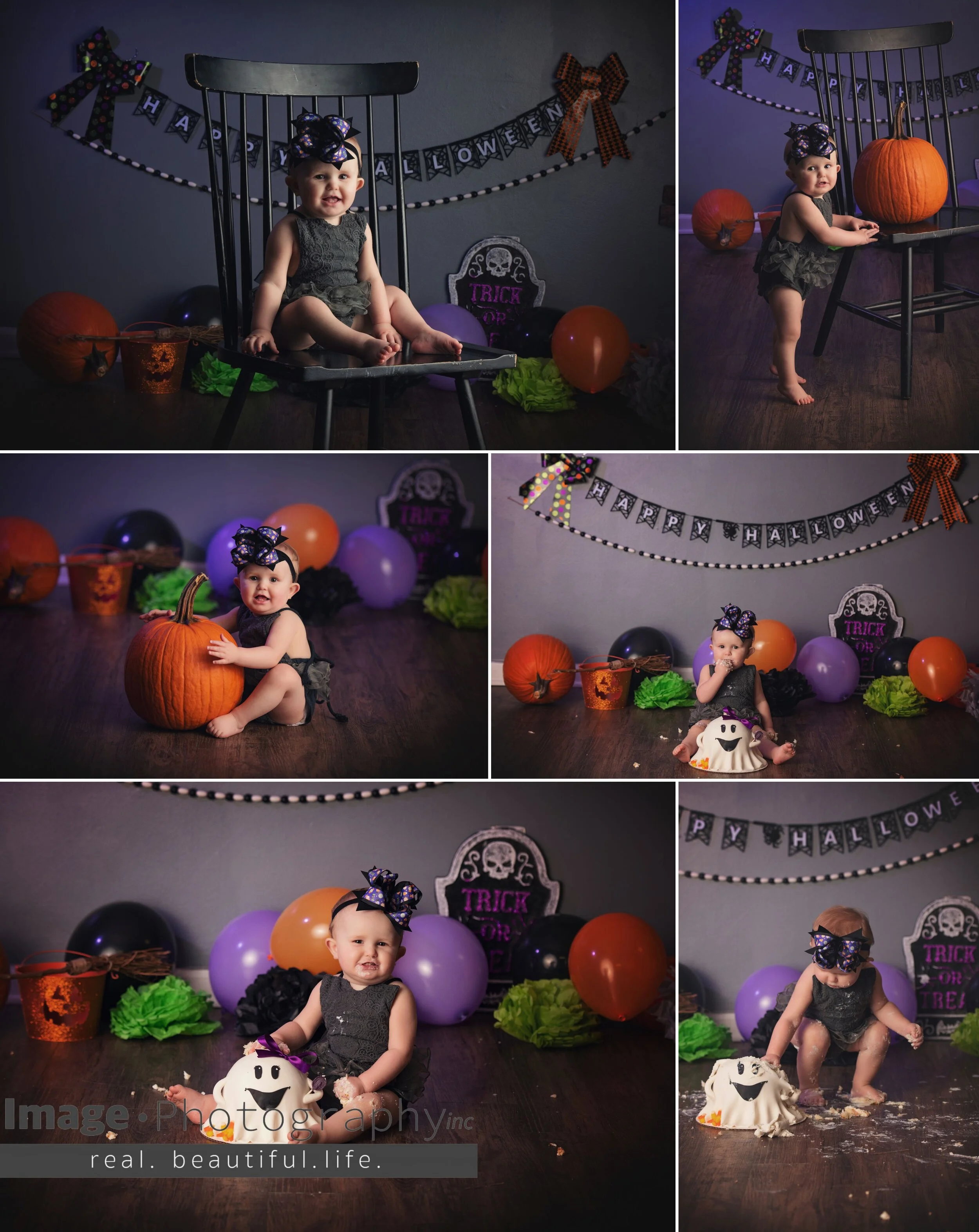 When mom told us she wanted to do a Halloween Cake Smash session for this baby girl’s first birthday, we were excited. Cake Smash sessions are our fave! Cupcake Kitchen did an amazing job on the cake and this little girl was ready to smash and eat some cake! Happy Birthday, Boo-tiful!