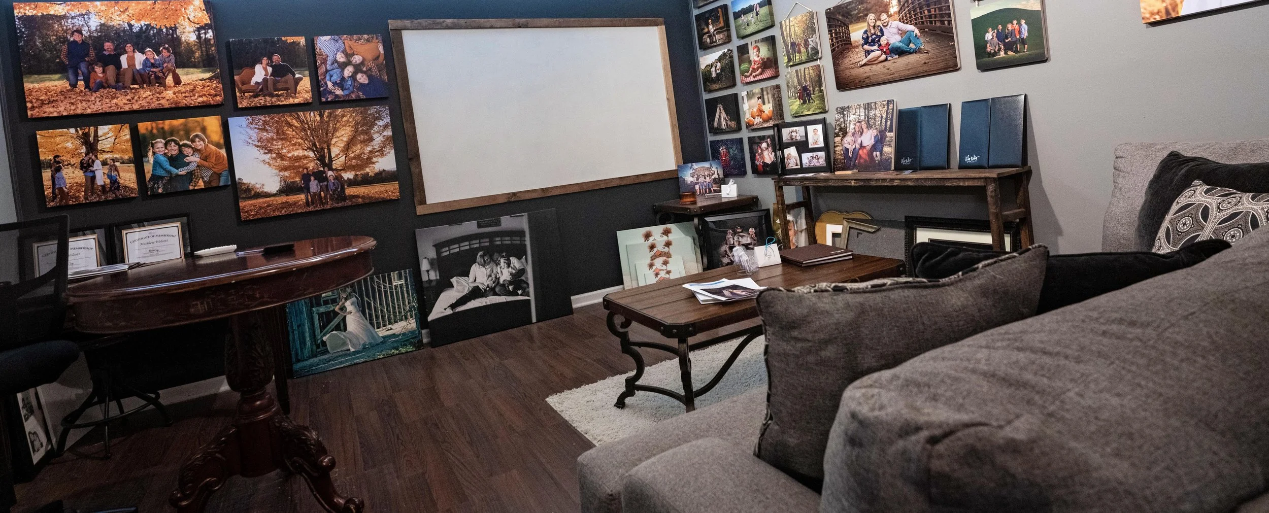 After your photo session, we'll meet again about a week later in my studio to view your amazing images. We'll display the photos using a projector screen while you and your family enjoy some snacks. We'll review all the images, and discuss the different looks, smiles, and color grading while narrowing down your favorites. You'll be able to view all the images in custom color and black and white and select which collection or products will best complement your home.