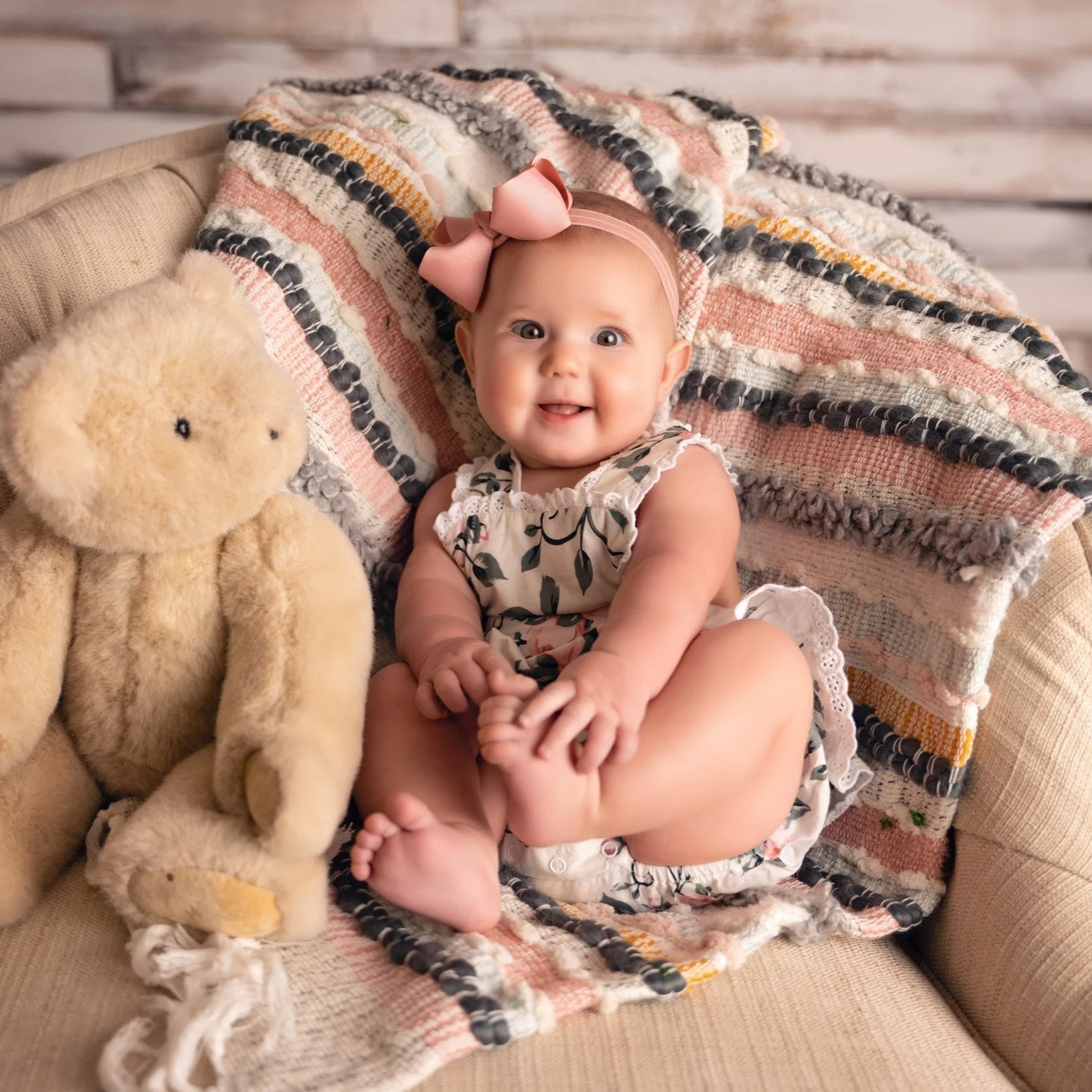 Throughout the year, we invite you back to our studio as it transforms with each season! We’ll create new and exciting scenes that capture your baby’s personality and accomplishments. We start with the push-up session, celebrating when your little one begins to push up off their belly. Next, we’ll document the joyful moment when they sit up independently. As they begin pulling up and standing, we’ll showcase this milestone just before they take their first steps! We’ll wrap up the year with a fun smash cake session to celebrate all their growth and achievements!